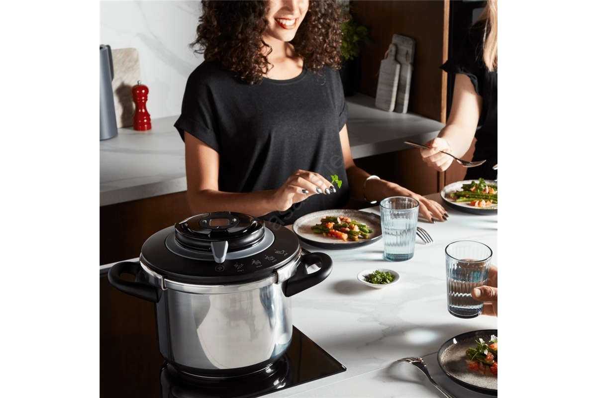 • Enables cooking up to twice as fast as conventional pot cooking thanks to its pressure mechanism.