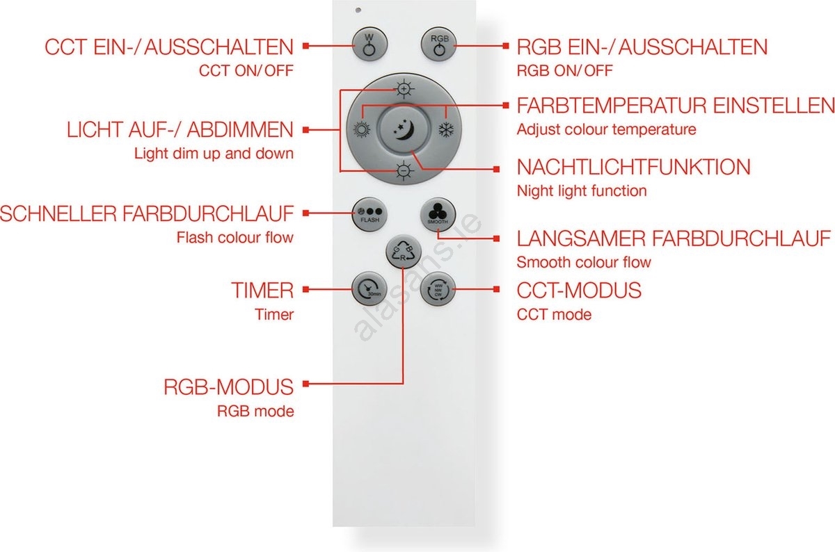 The appearance and functions of the remote control may differ depending on the batch of the light because the manufacturer is constantly striving to innovate it.