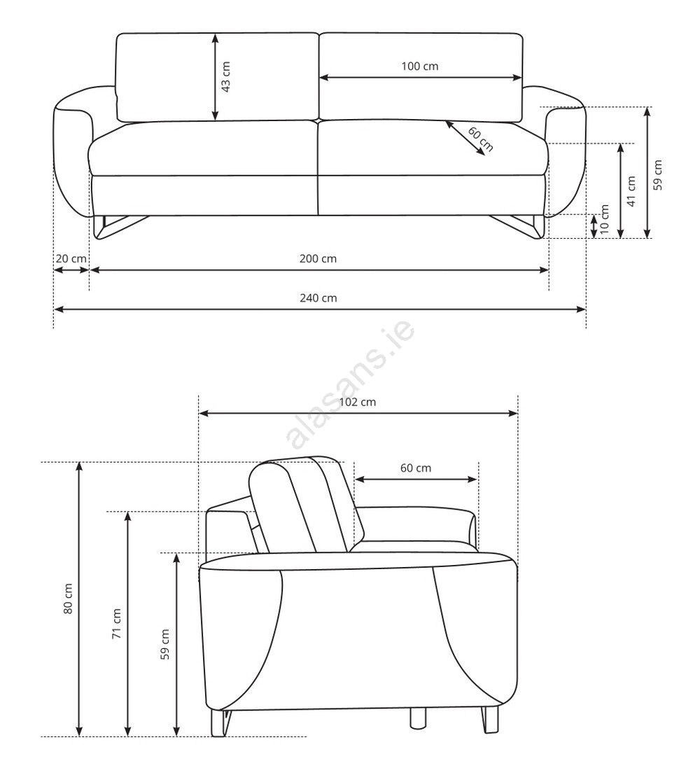 • Seat depth of 60 cm provides ample space for relaxed, ergonomic seating.