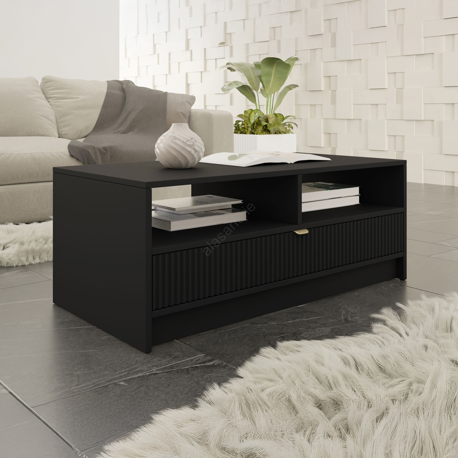 • Coffee table with a practical drawer and an open shelf to keep essentials within easy reach.