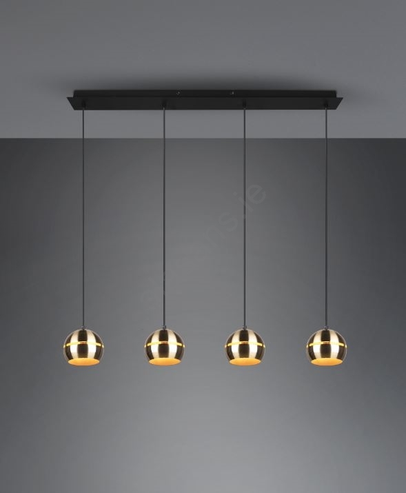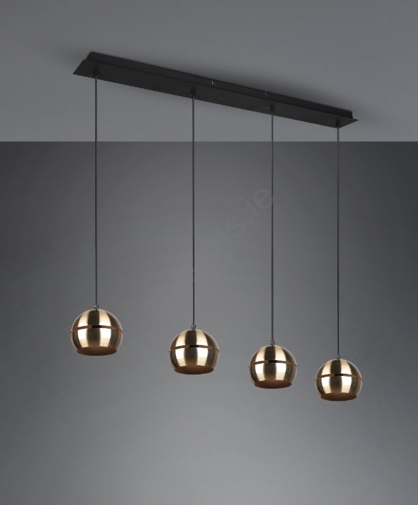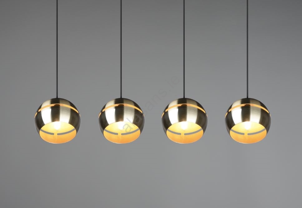 Trio - Chandelier on a string FLETCHER 4xE14/40W/230V brass characterizes nice and functional design.  A bulb with E14 cap is suitable for the light. Here, you can buy other bulbs at advantageous prices. You will have an interesting addtiion to your home.