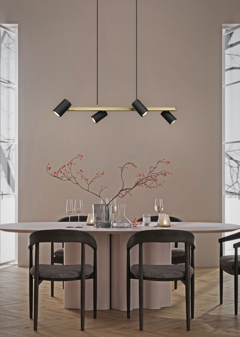 Trio - MARLEY cable-hung pendant 4xGU10/35W/230V black/gold characterizes nice and functional design.  A bulb with GU10 cap is suitable for the light. Here, you can buy other bulbs at advantageous prices. You will have an interesting addtiion to your home.
