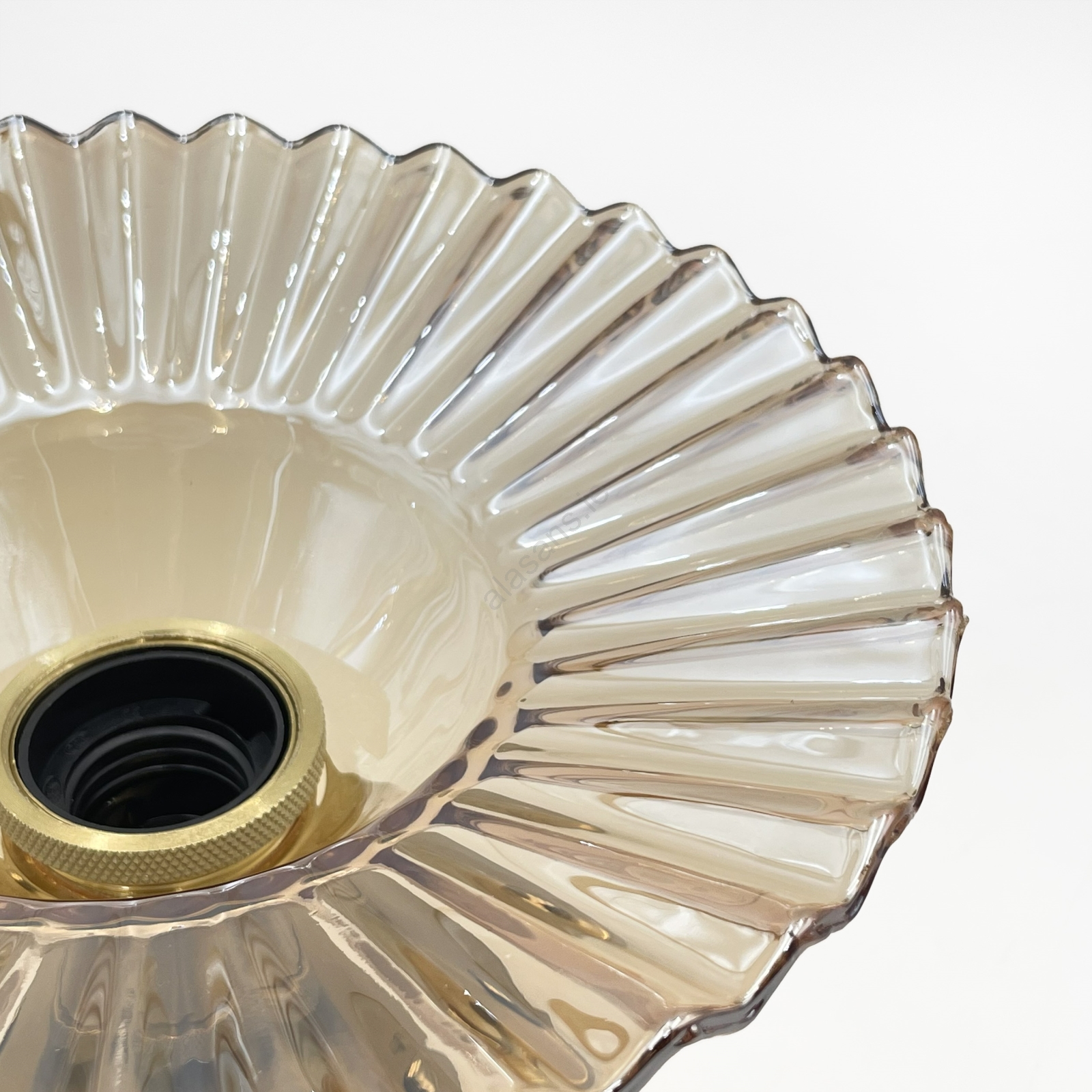 TRISH Flush-Mount Chandelier 1x E27/15W/230V, Gold/Smoked Beige characterizes nice and functional design.  A bulb with E27 cap is suitable for the light. Here, you can buy other bulbs at advantageous prices. You will have an interesting addtiion to your home.