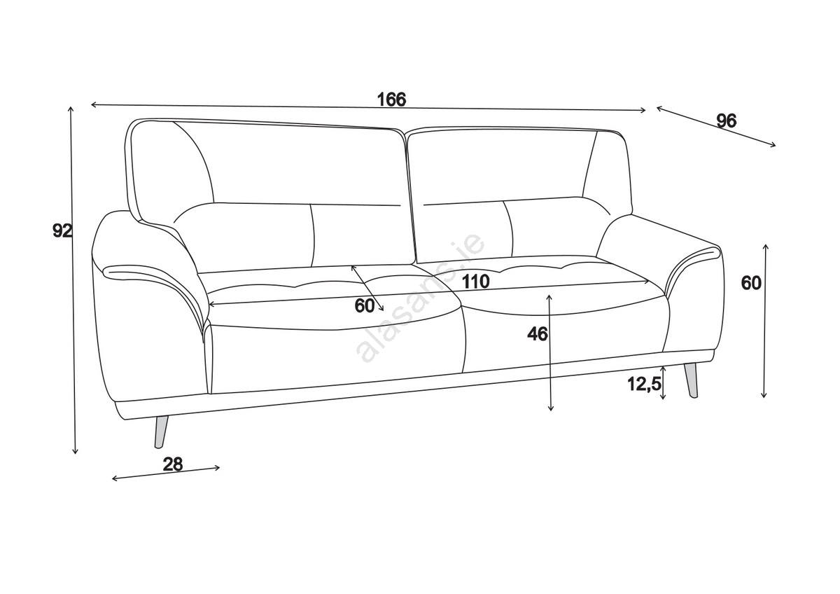 • With a comfortable seat height of 46 cm and a depth of 60 cm, it ensures ergonomic and relaxing seating.