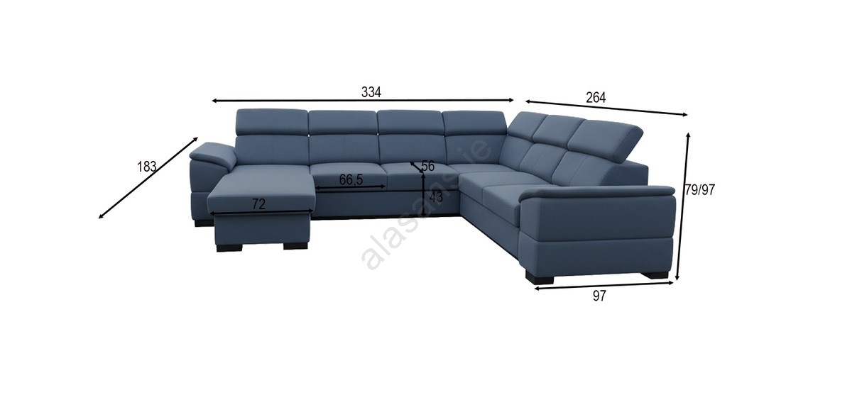 • The back of the sectional is finished with quality upholstery, allowing free placement in the room.