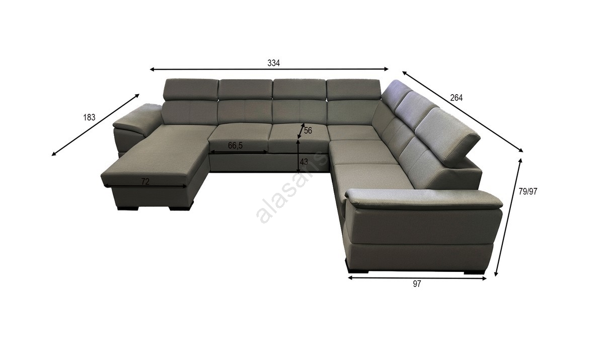 • The sofa offers 7 adjustable headrests with 5 positions each.