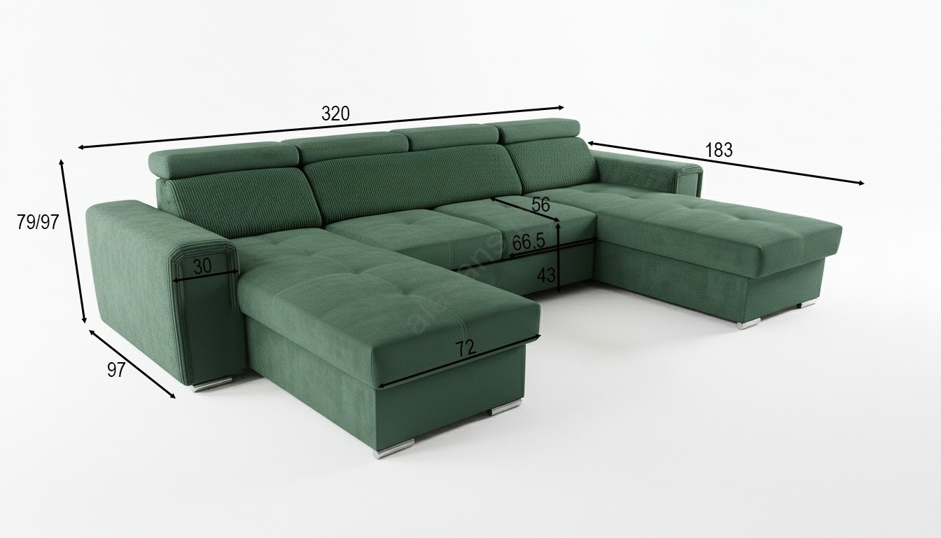 • Spacious U-shaped corner sofa is ideal for everyday sleeping and offers both comfort and stylish design.