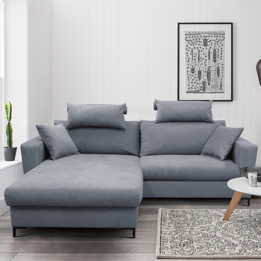 • HORTA Right-hand L-shaped Corner Sofa Bed with Storage, Grey