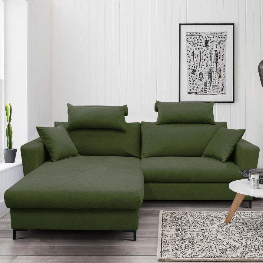 • HORTA Right-Hand L-Shaped Corner Sofa Bed with Storage, Green