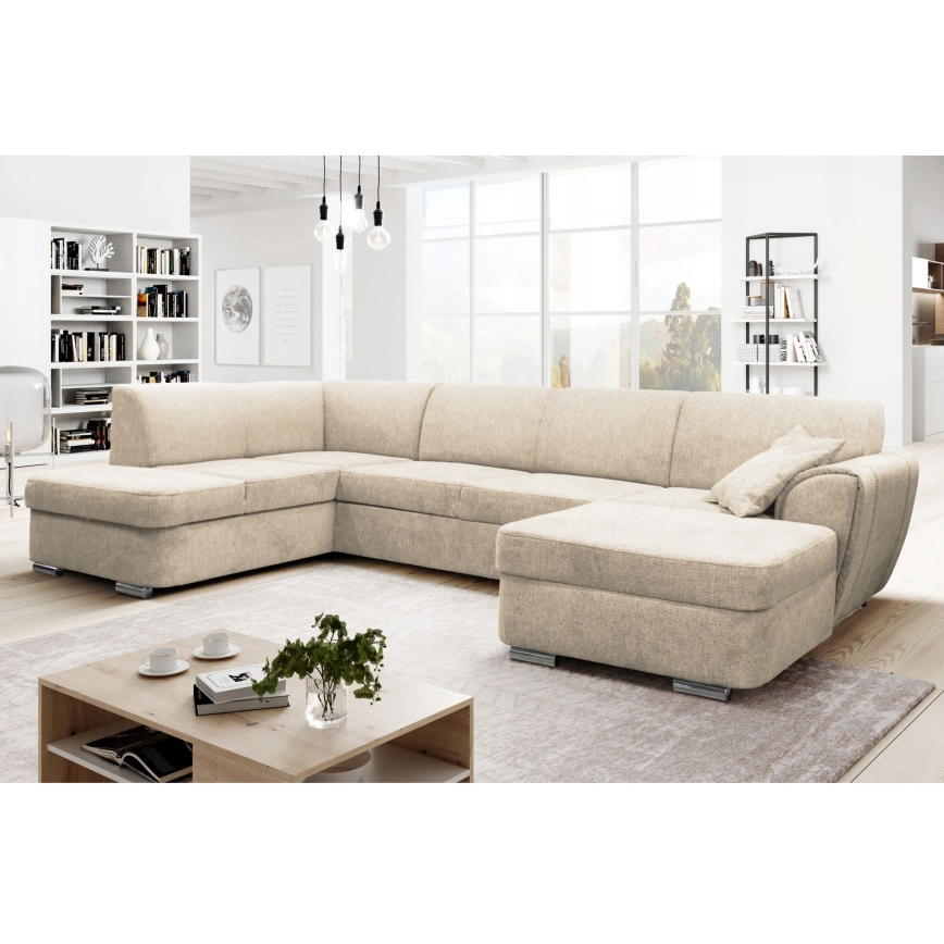 • Right-facing U-shaped corner sofa bed with storage SERPA, beige