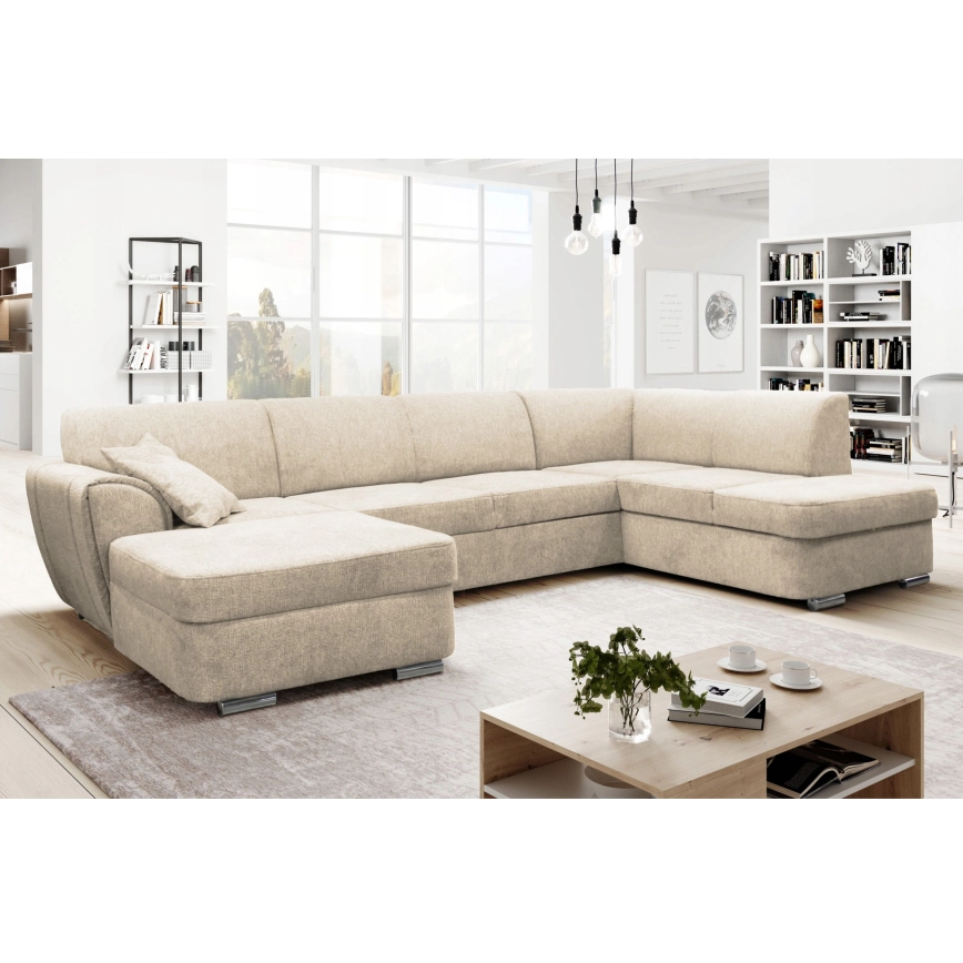 • Right-facing U-shaped corner sofa bed with storage SERPA, beige