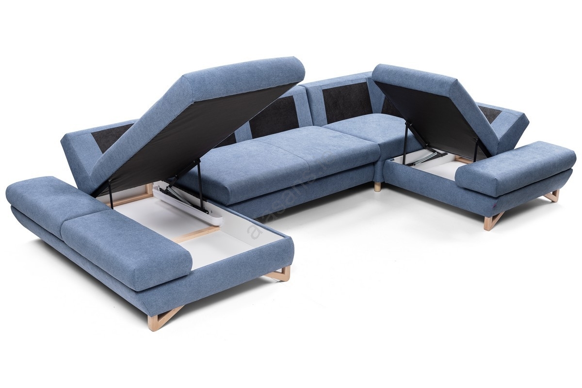 AVESTA U-shaped Upholstered Corner Sofa Bed with Storage, Blue