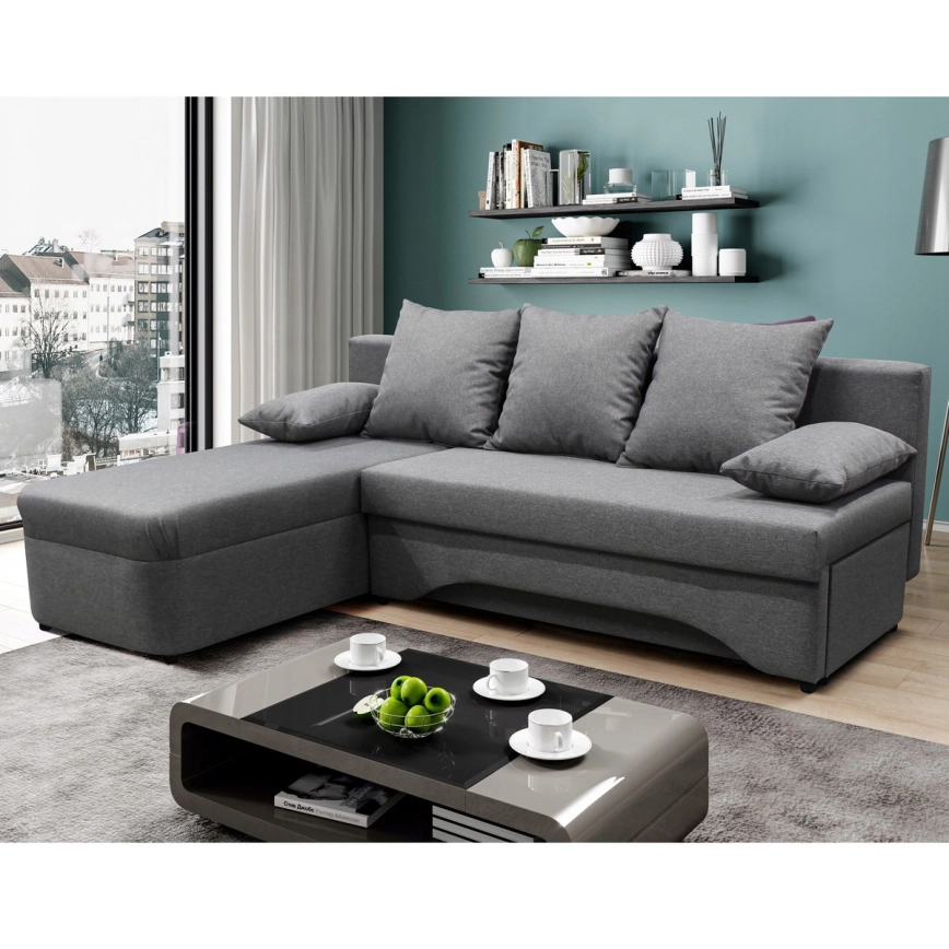 • ALMEIDA Reversible L-shaped Corner Sofa Bed with Storage, Anthracite