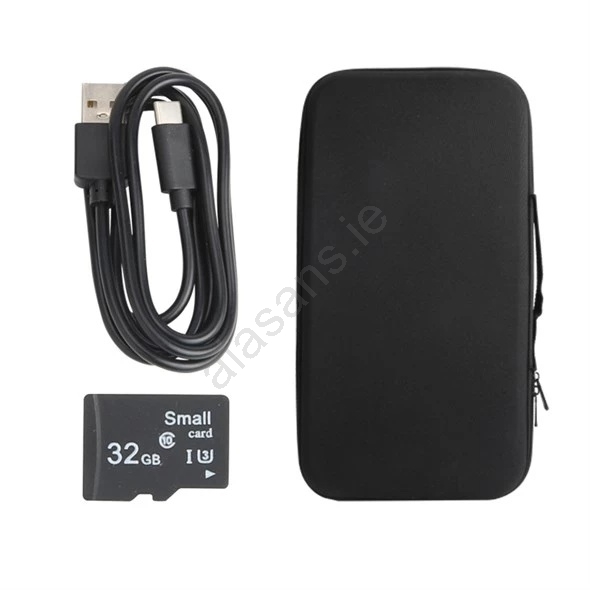 • Package contents: borescope, detachable probe with camera head, 32 GB memory card, charging cable.