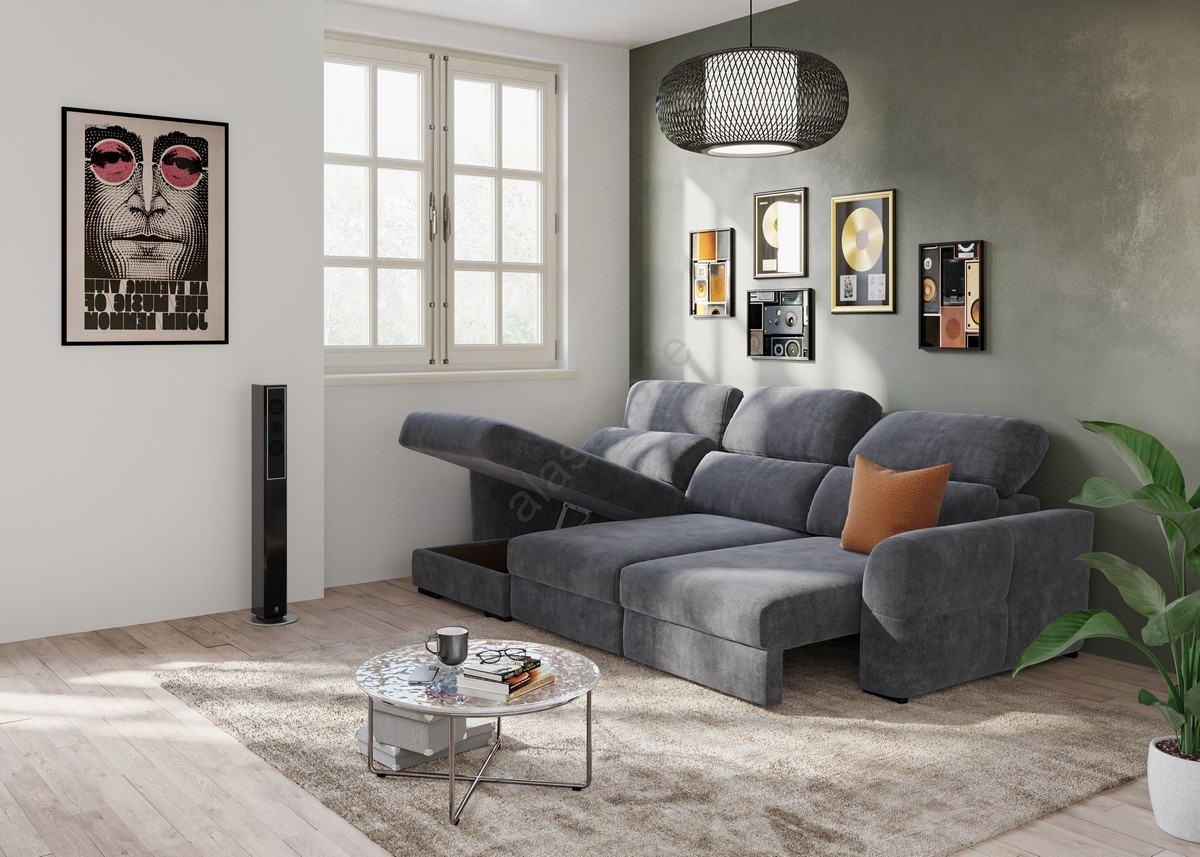 • Reversible corner 3-seater sofa bed with storage TRENTO, grey