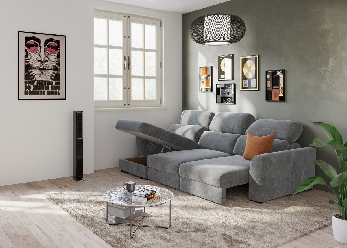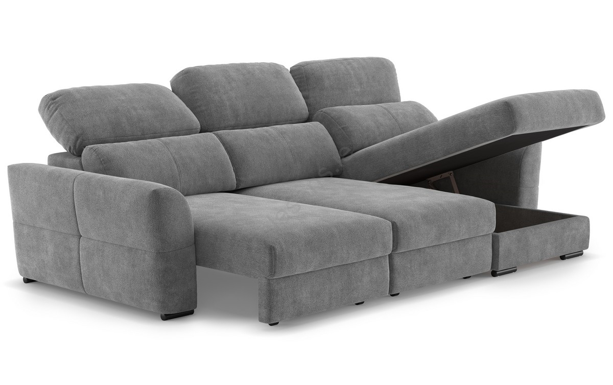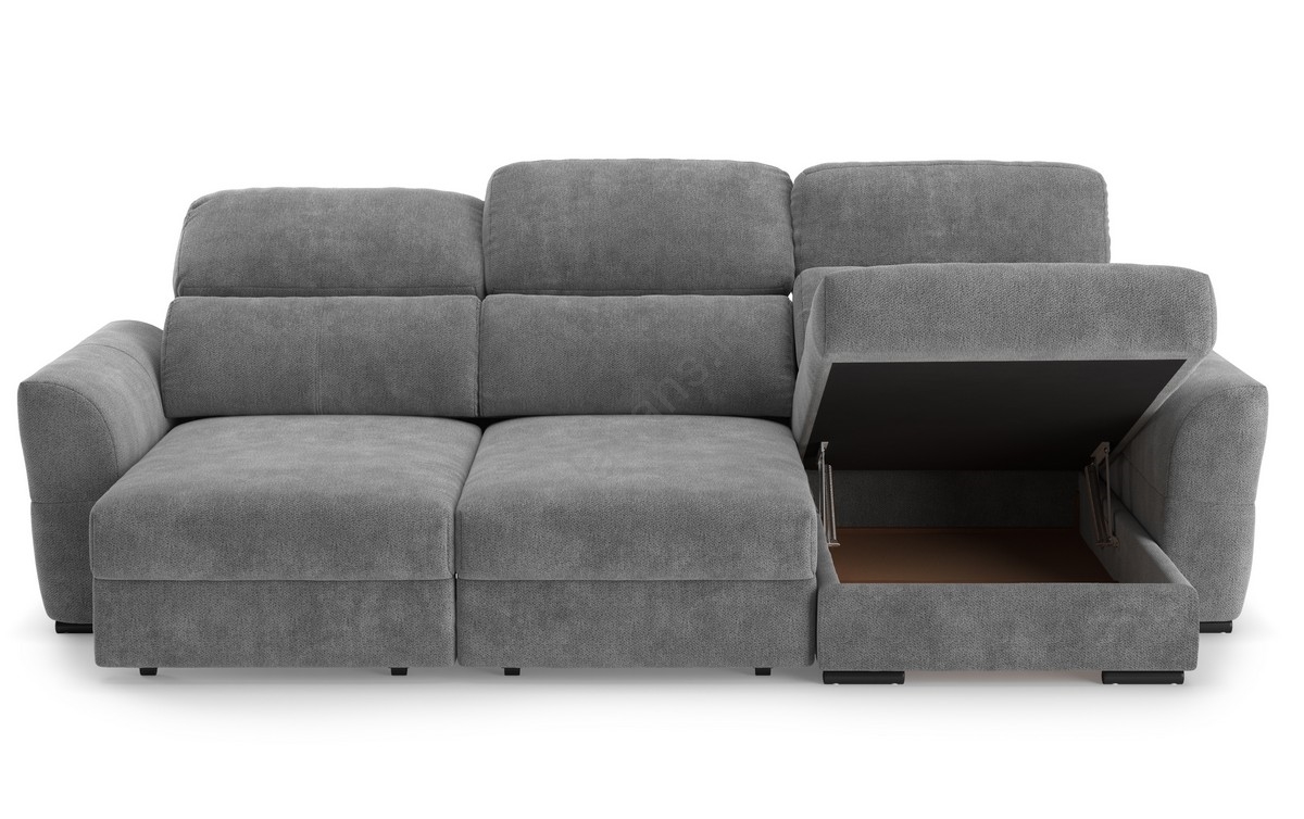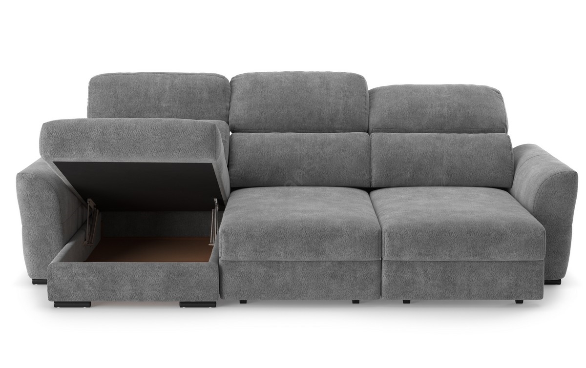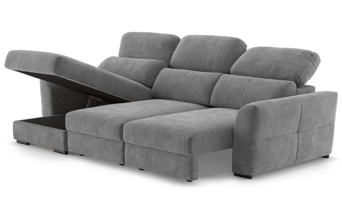 Reversible corner 3-seater sofa bed with storage TRENTO, grey