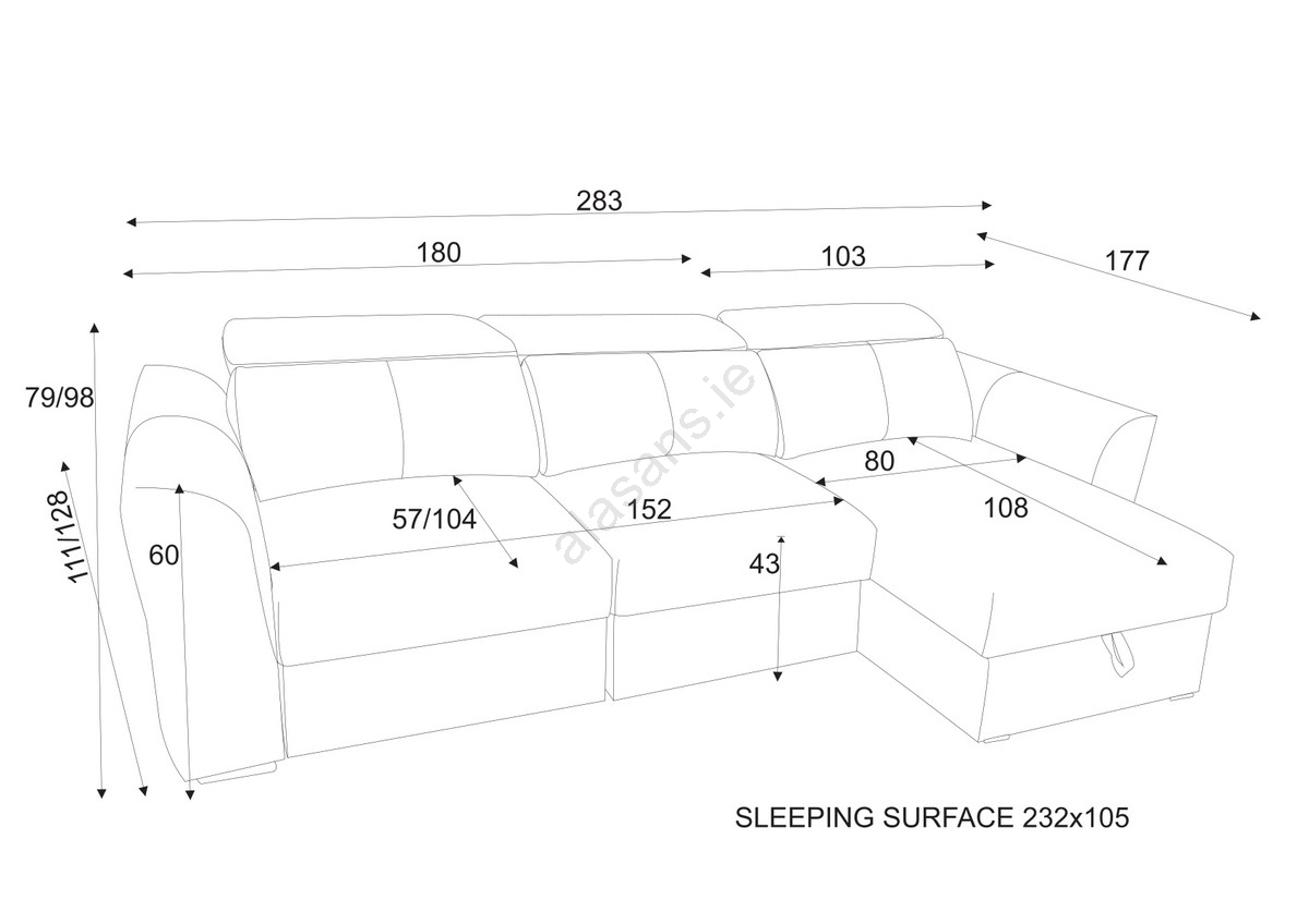• This model also includes a storage compartment, providing practical space for duvets, pillows or other essentials.