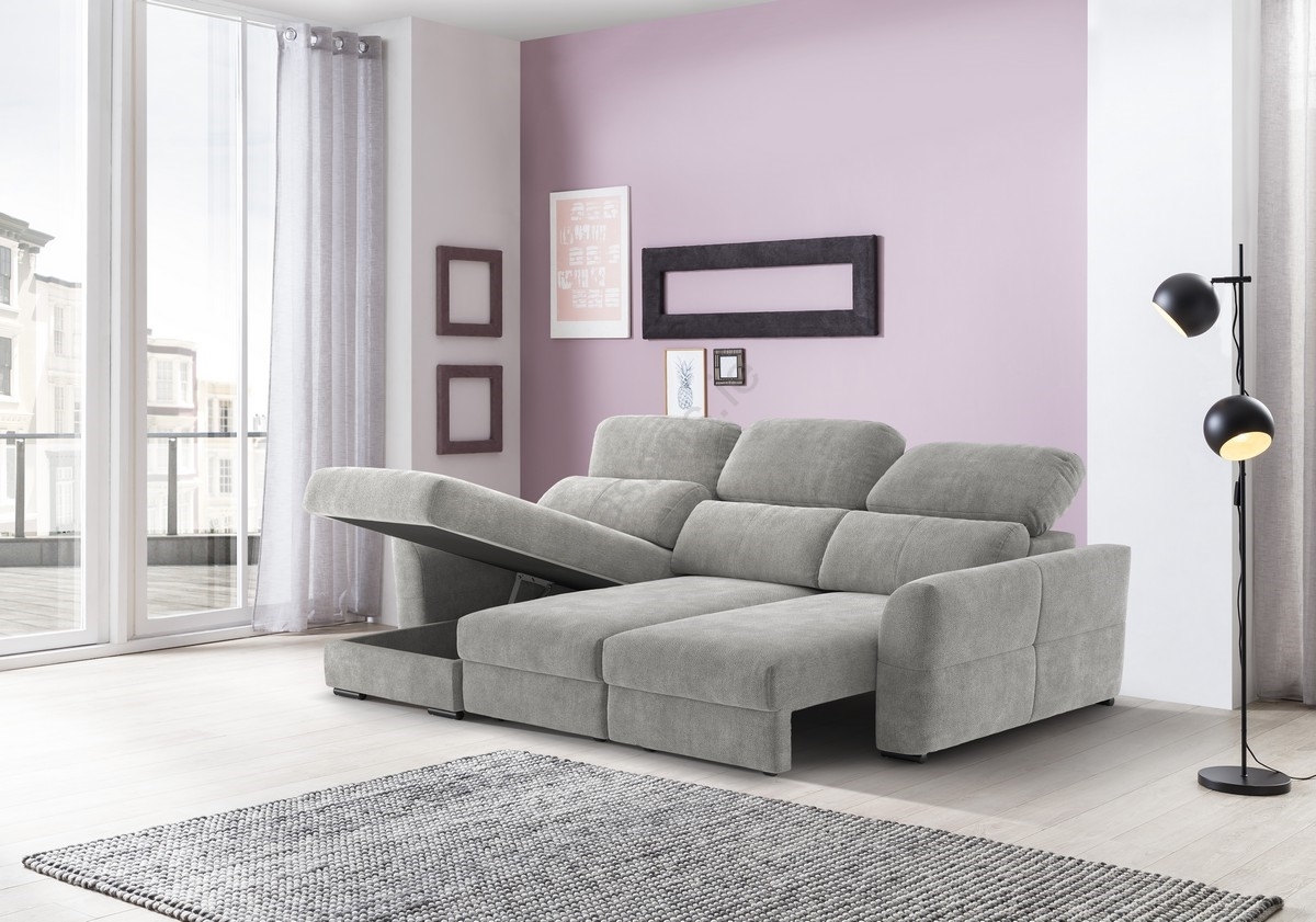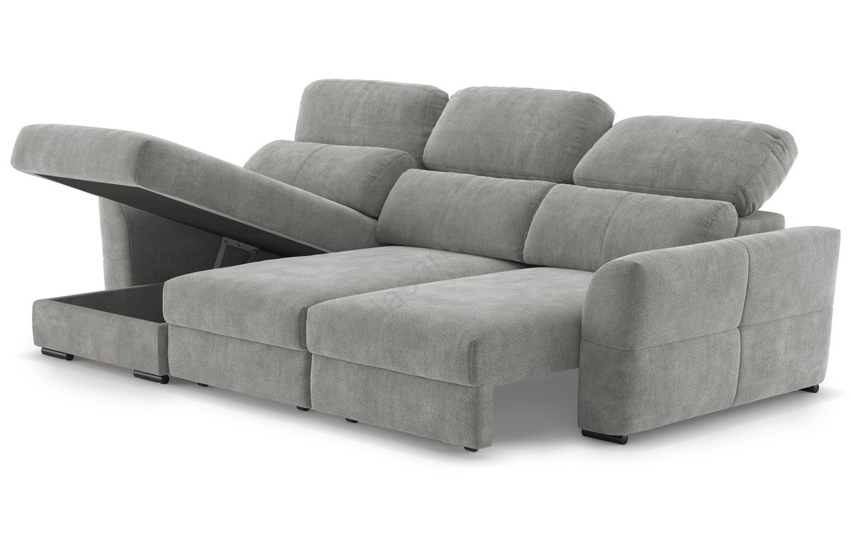 • Reversible corner 3-seater sofa bed with storage TRENTO, grey