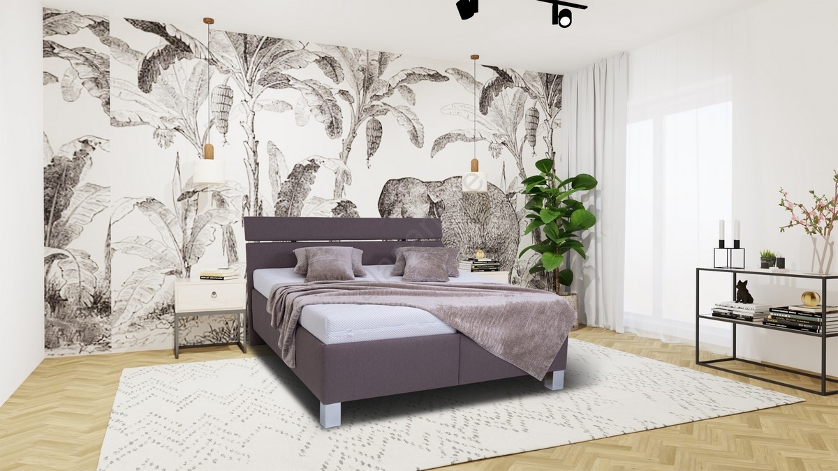 • Upholstered bed with mattress and storage ALIS 180x200 cm light grey