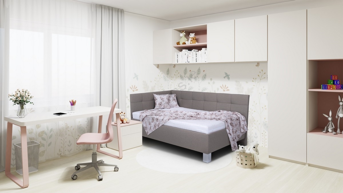 • Upholstered storage bed, mattress not included MARIA PETITE 120x200 cm grey