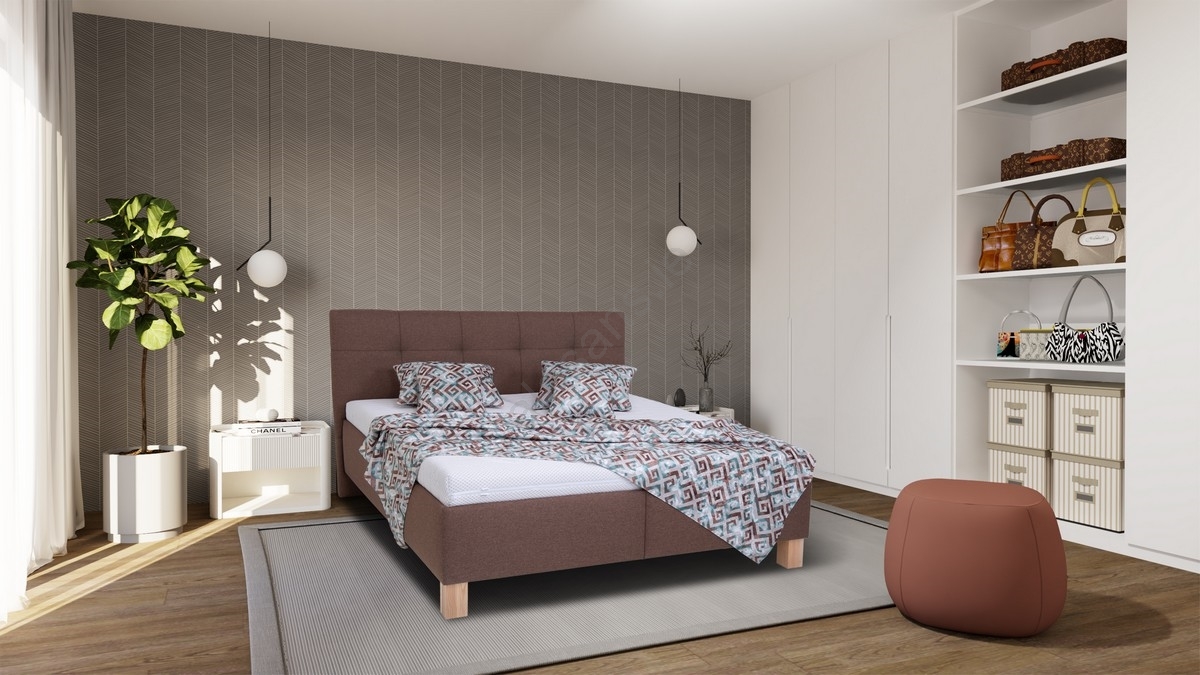 • MARIA Upholstered Bed with Mattress and Storage Compartment, 160x200 cm, Brown