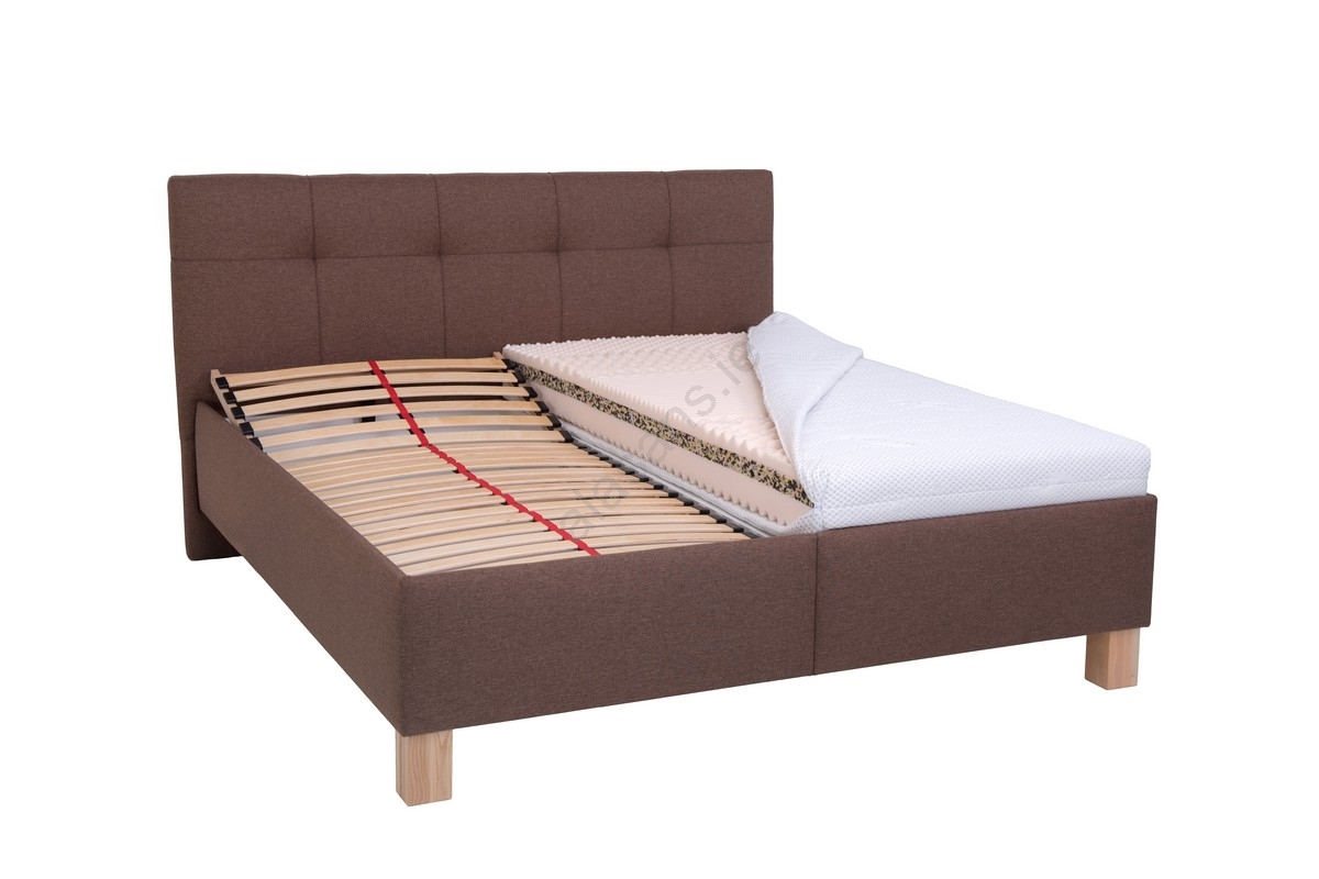 MARIA Upholstered Bed with Mattress and Storage Compartment, 160x200 cm, Brown