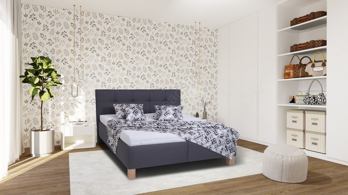• MARIA Upholstered Bed with Mattress and Storage, 160x200 cm, Grey