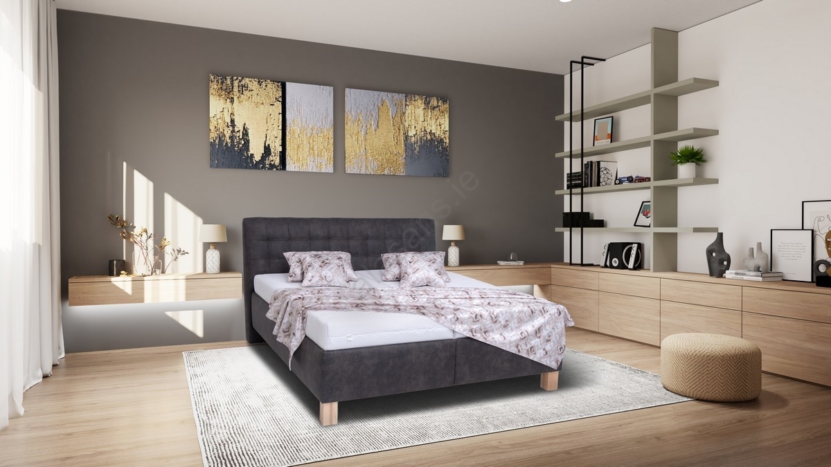 • VIOLET Upholstered Bed with Mattress and Storage, 180x200 cm, Dark Grey