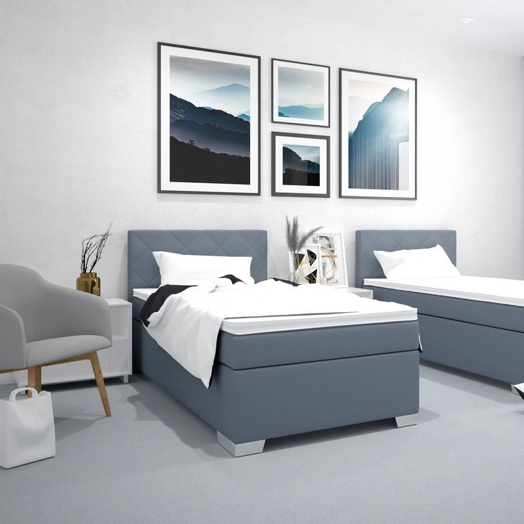 IDA Upholstered Bed with Mattress, 90 x 200 cm, Blue