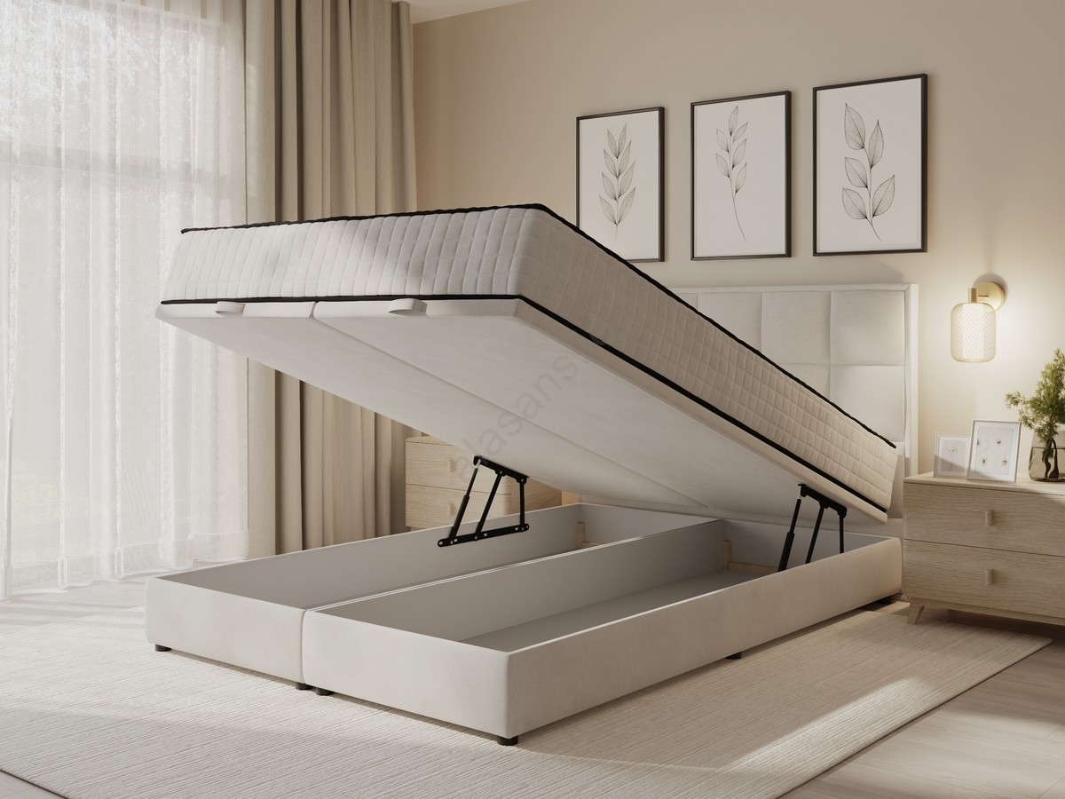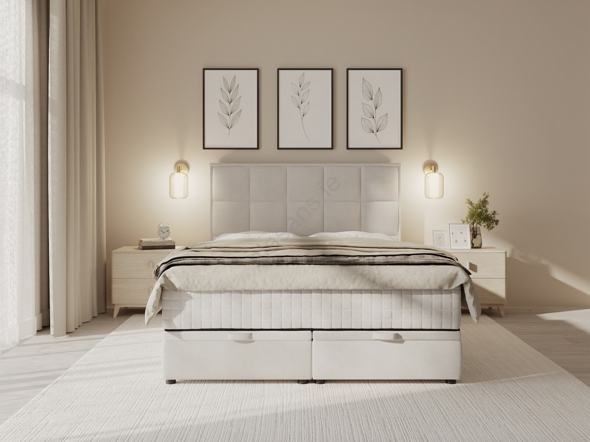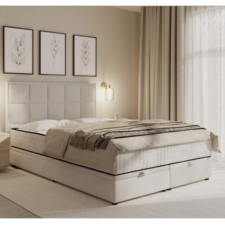GRACE Upholstered Bed with Mattresses and Storage, 180x200 cm, Beige