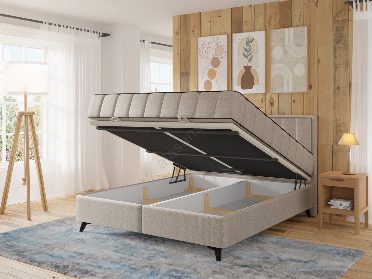 ALICIA upholstered bed with mattresses, mattress topper and storage 160x200 cm beige