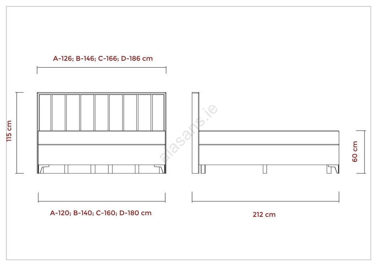 • With an airy frame, subtly textured fabric and a tall headboard with pronounced vertical stitching, it’s the ideal choice for your bedroom.