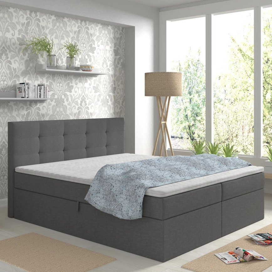 EMBER Upholstered Bed with Mattresses, Mattress Topper and Storage, 180x200 cm, Anthracite