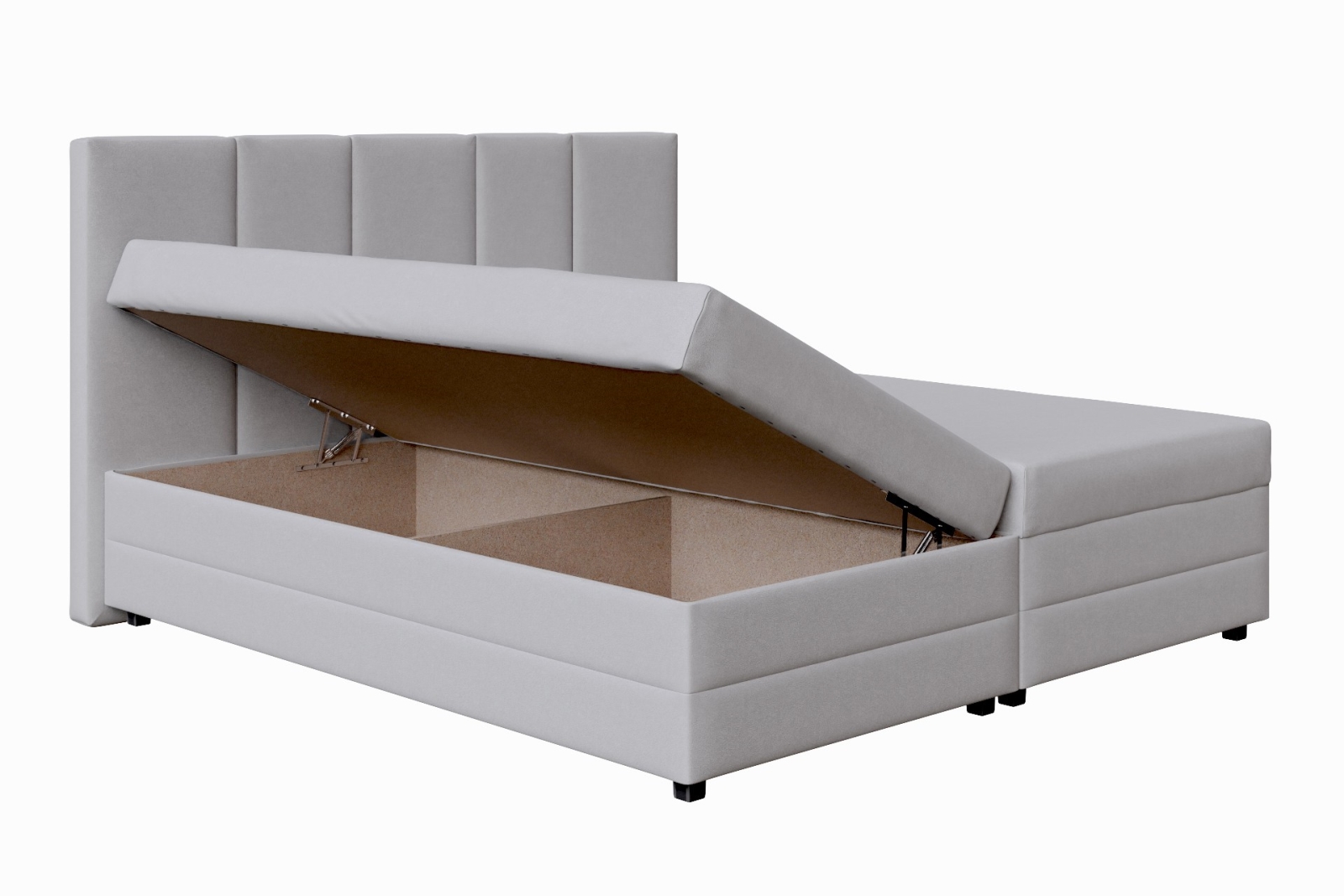 • Upholstered bed with spring mattress and storage ISABEL 180x200 light gray