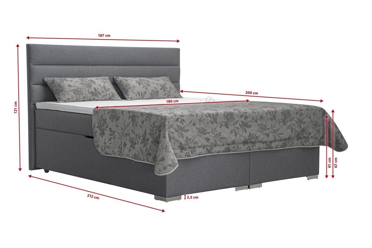 NEW BOLERO Upholstered Bed with Storage, Mattresses and Mattress Topper — 180×200 cm, Grey