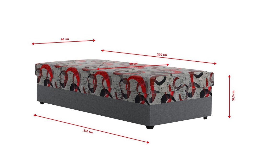 • The divan has a PxJx core made of polyurethane foams (PUR), which is mounted on a slatted frame and upholstered together.