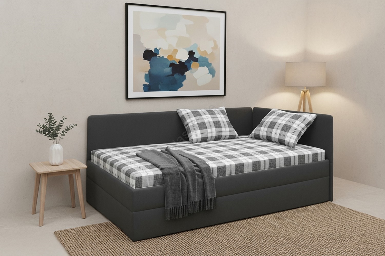 Upholstered daybed with reversible left/right headboard ARLY 110x200 cm anthracite/white