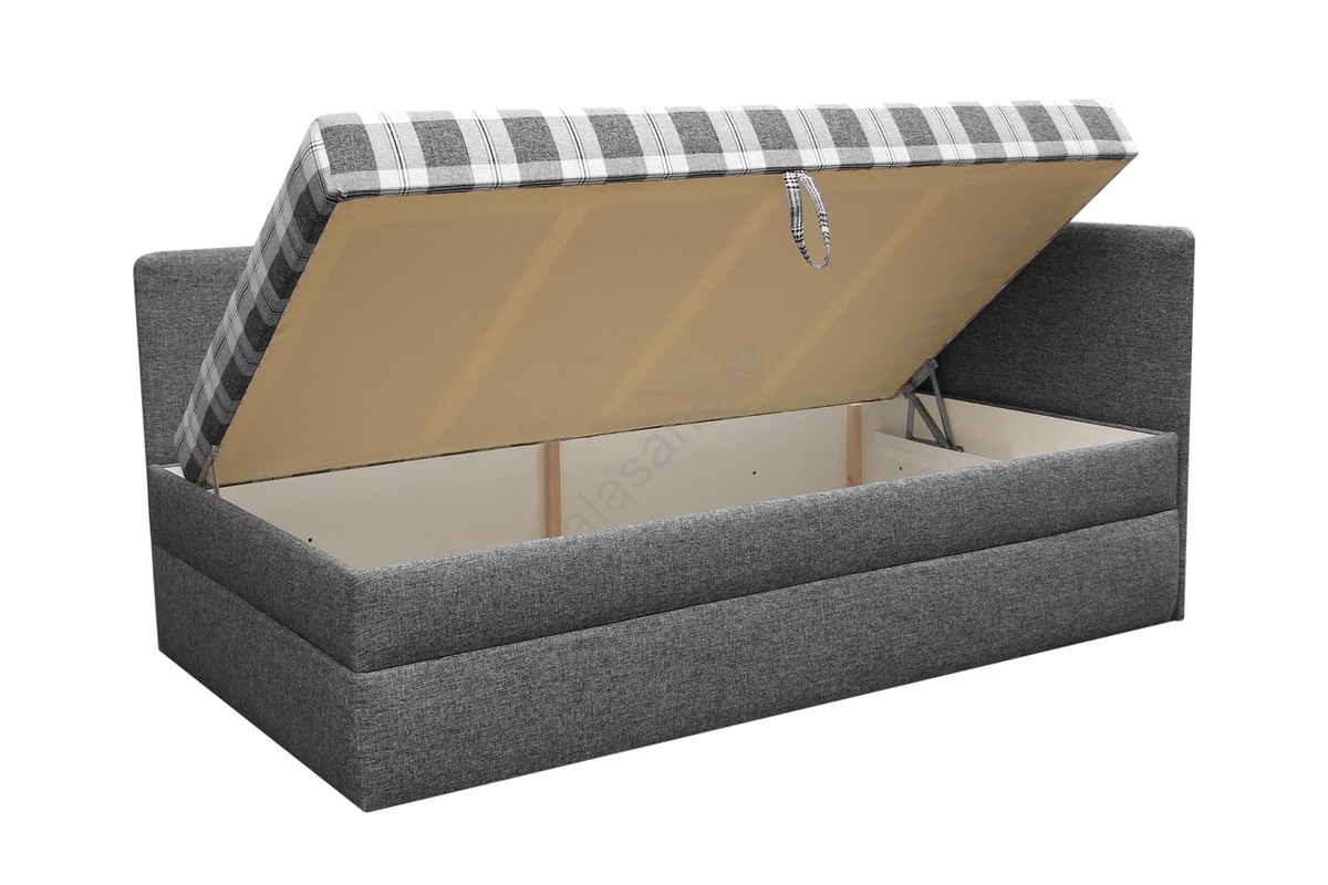 • The daybed is equipped with a large storage compartment with side lift for storing bedding and other seasonal items.