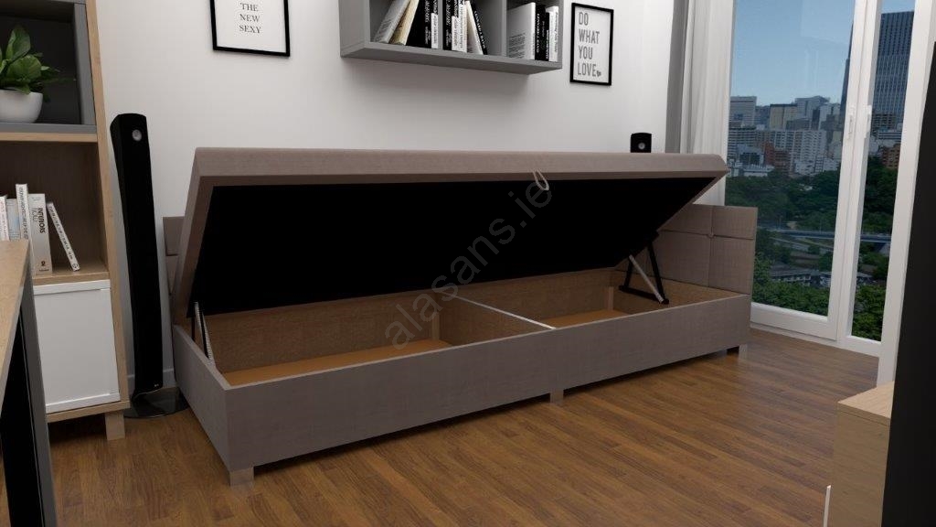 • AMSTERDAM Upholstered daybed with reversible headboard and storage, 90x200 cm, beige