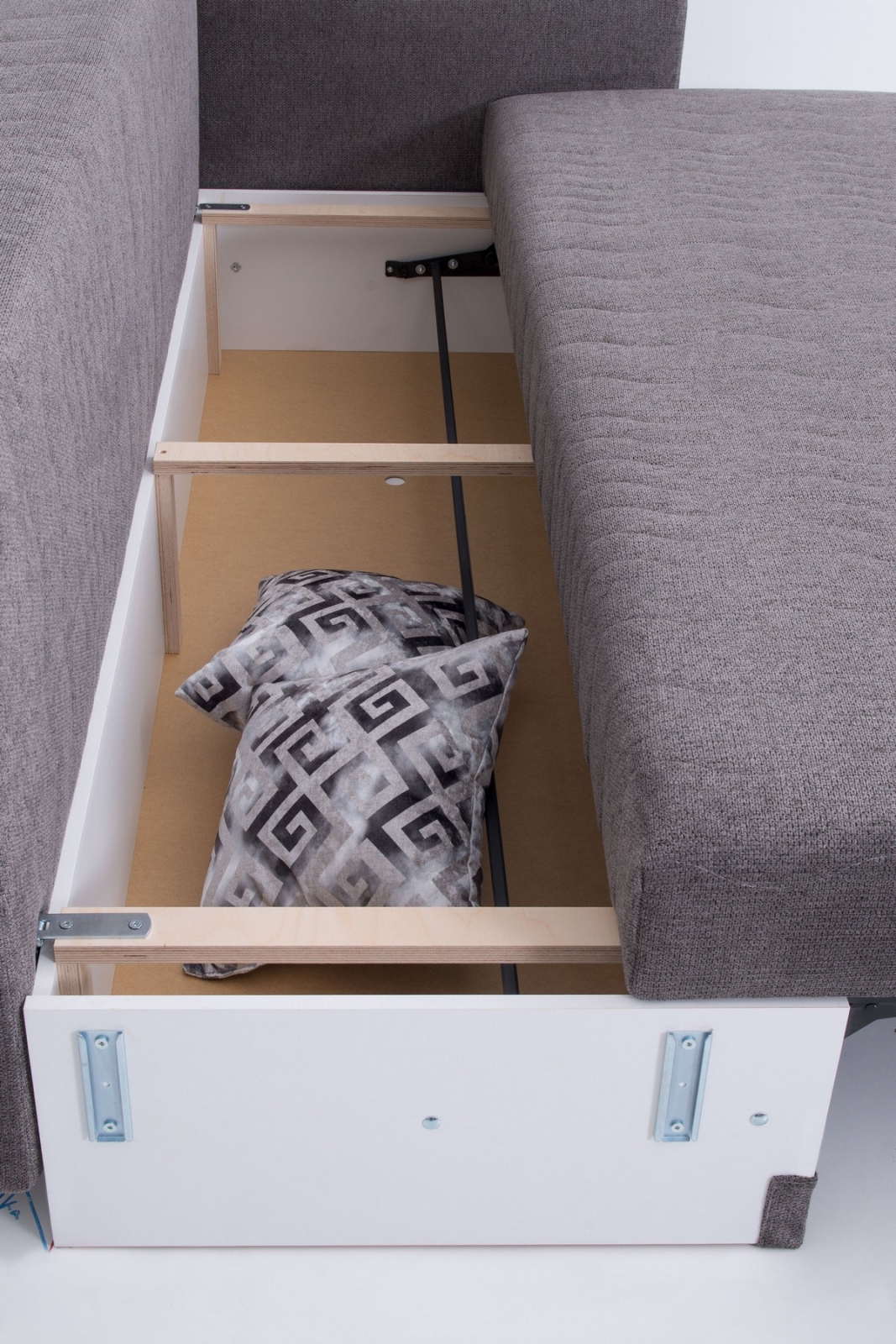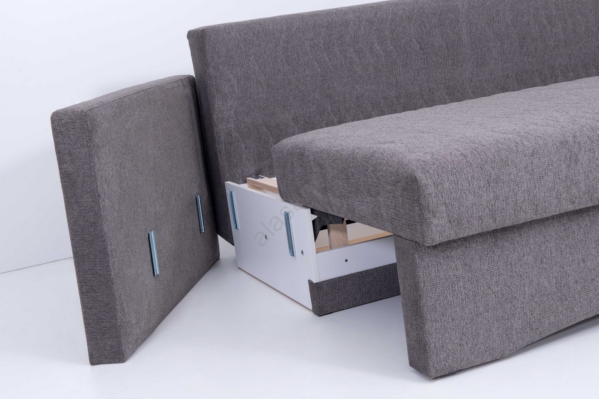 • The sofa includes a large storage compartment, which is ideal for bedding or other items.