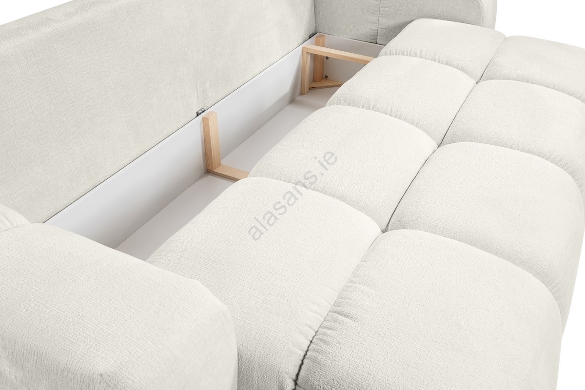 • ALMADA Beige Upholstered 3-Seater Sofa Bed with Storage