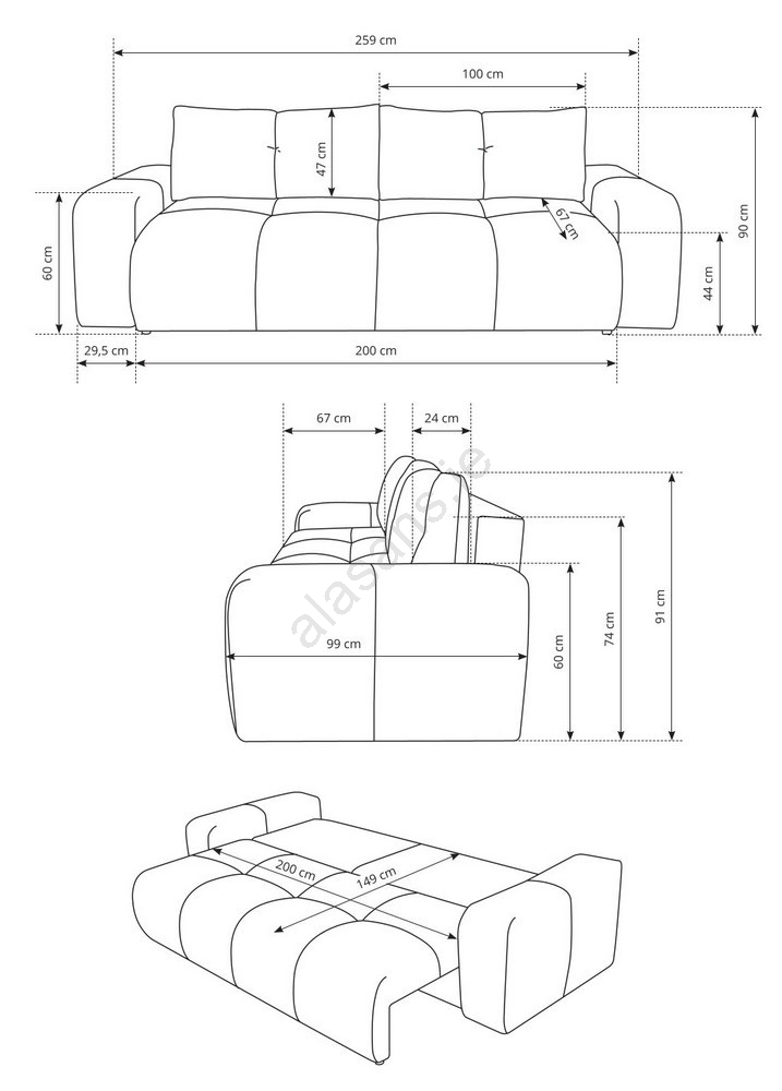 • Modern ALMADA upholstered sofa bed is the ideal choice for anyone looking for a blend of style, comfort and practicality.