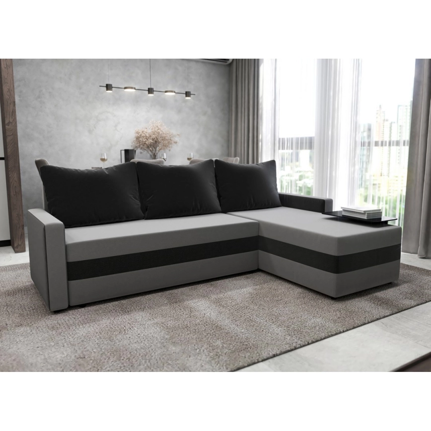 BRISTOL Upholstered Reversible L-Shaped Corner Sofa Bed, Gray/Black