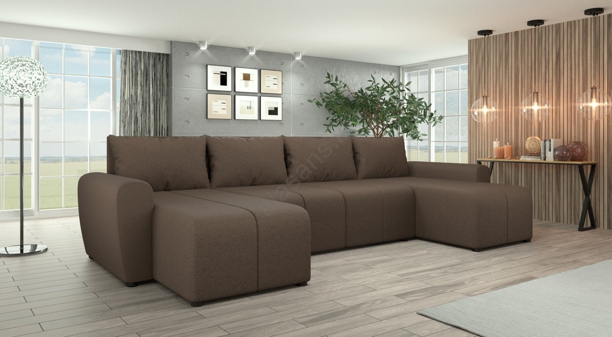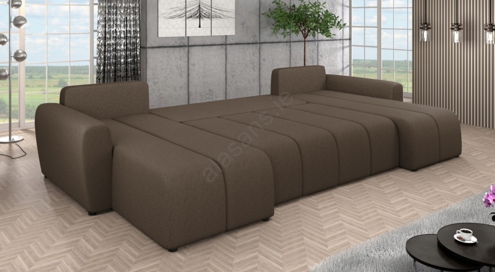 • NEWPORT Upholstered Reversible U-Shaped Sofa Bed, Brown
