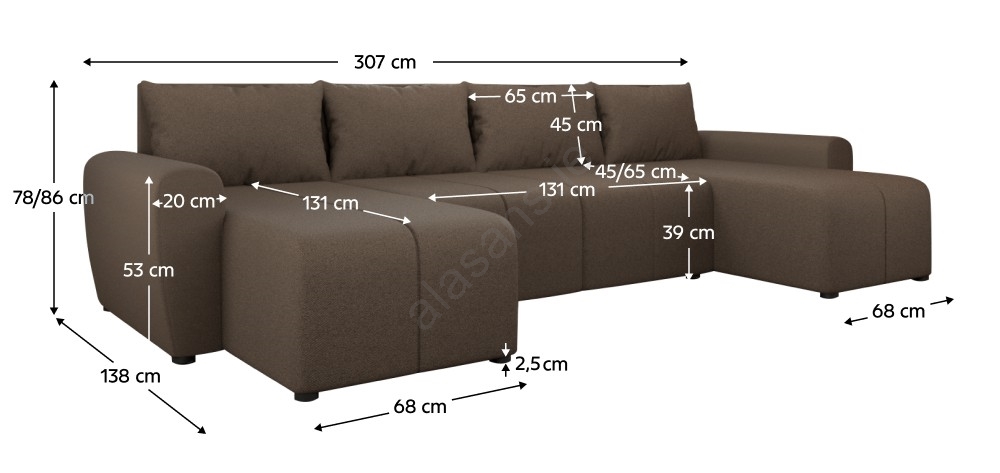 • If you are looking for a combination of modern style, comfort and functionality, the NEWPORT U corner sofa is a versatile solution for spacious living rooms that impresses with its design and practicality.