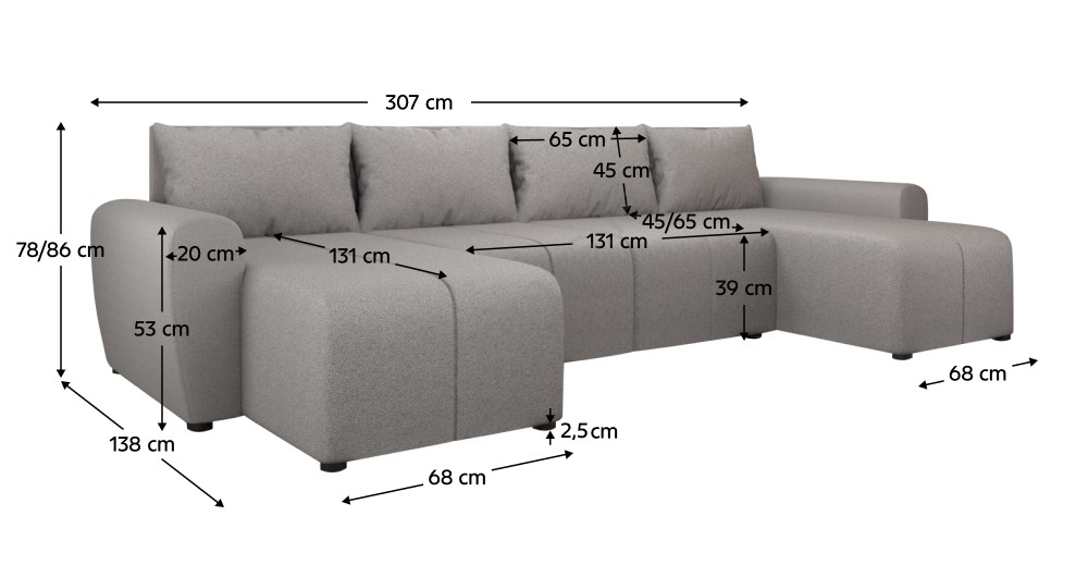 • If you're looking for a blend of modern style, comfort and functionality, the NEWPORT U corner sofa is a versatile solution for spacious living rooms, impressing with its design and practicality.