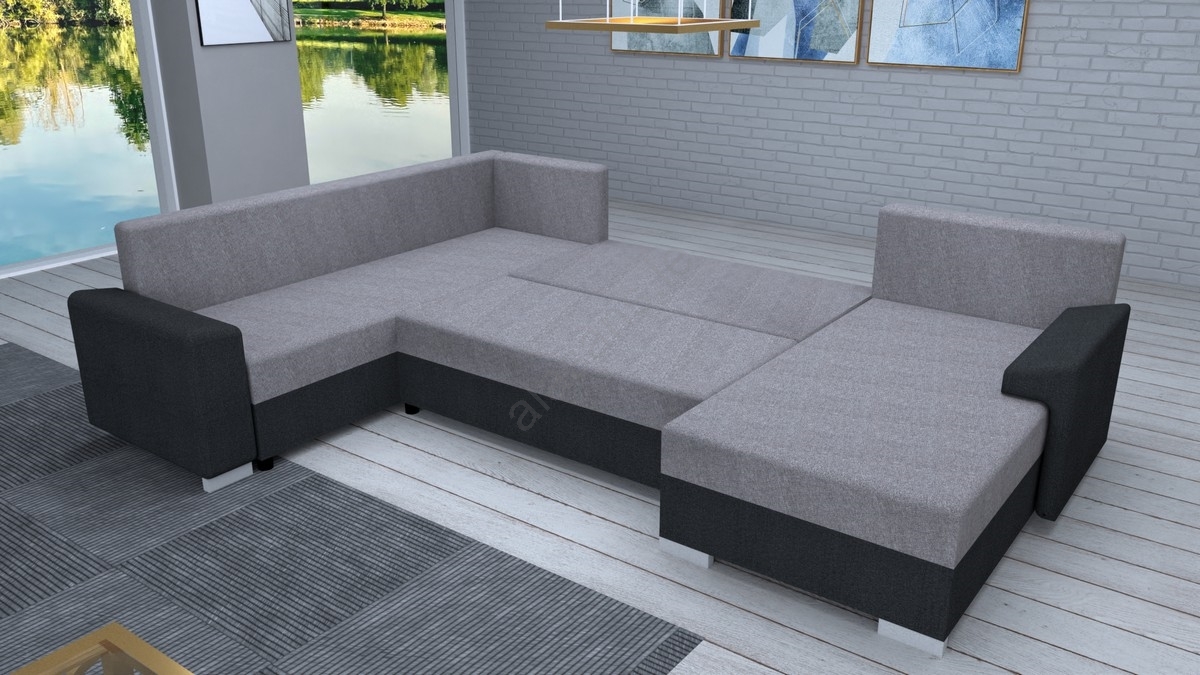 OXFORD Upholstered U-Shaped Convertible Sofa, Universal Configuration, Black/Grey