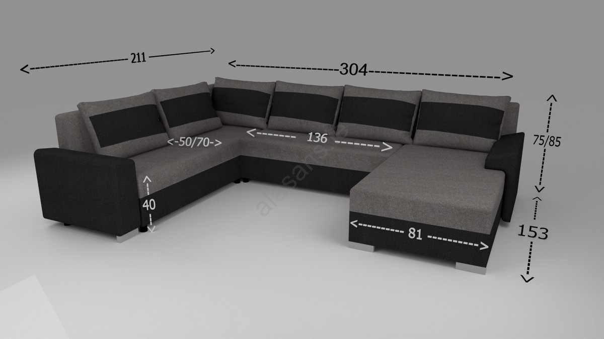 • OXFORD Upholstered U-Shaped Convertible Sofa, Universal Configuration, Black/Grey
