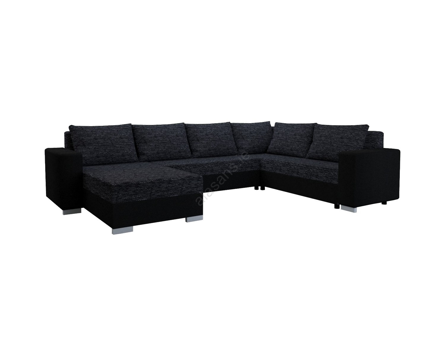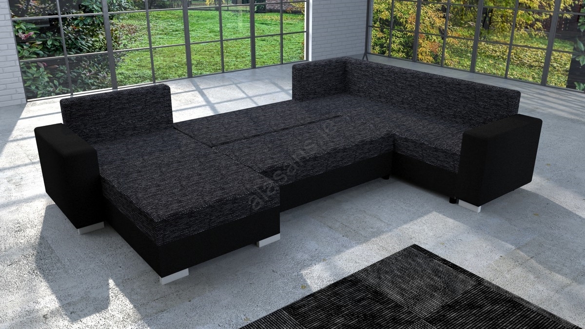 • YORK Upholstered Universal U-Shaped Sofa Bed, Black/Anthracite
