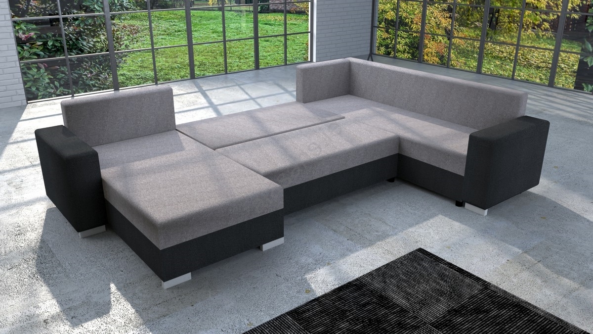 • YORK Upholstered Universal U-Shaped Sofa Bed, Grey/Black